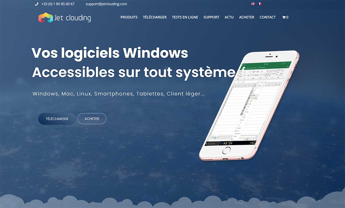 Il supporte les connexions Bureau à distance (RDS) simultanées, la redirection des imprimantes, mapping de disques, de port com, son bidirectionnel, double écran… Tout client compatible RDP peut être utilisé pour se connecter sur un système Jet Clouding.